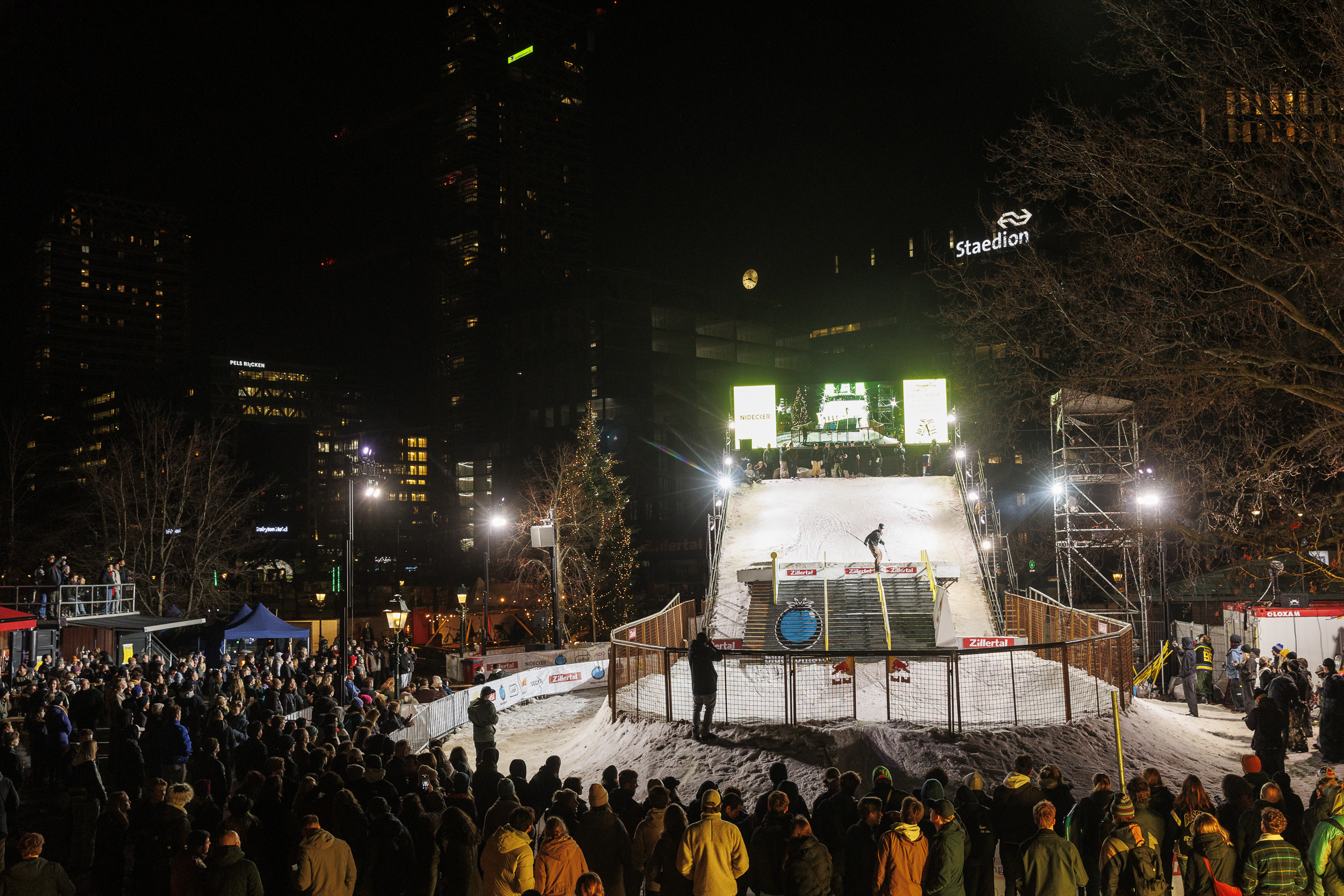 Op de Koekamp, tegenover Den Haag Centraal, verrijst een compleet wintersportdorp met een indrukwekkende ski- en snowboardschans.